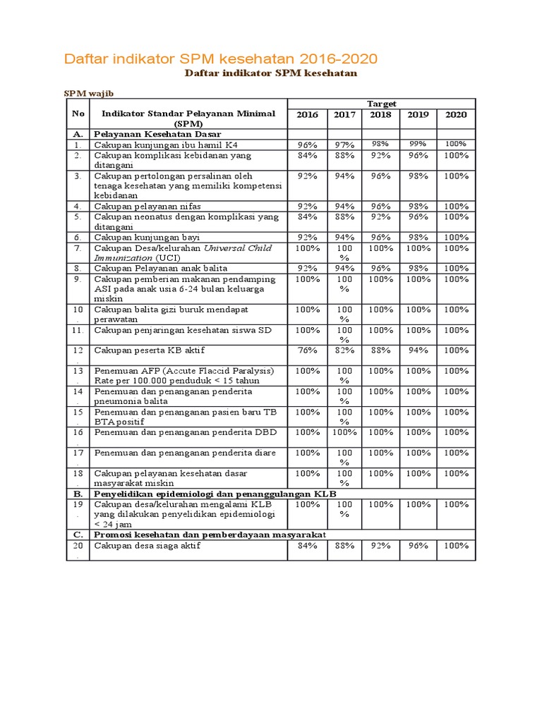 Daftar Indikator Spm Kesehatan 2016 Pdf